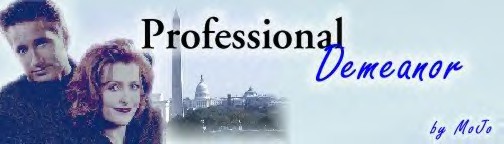 "You don't have to, Scully. Just give me an explanation. Let me know what's going on," Mulder said, touching my shoulder. "I'll try to back off, during the week. Sometimes I feel like I barely see you, the real you. Without the professional demeanor."